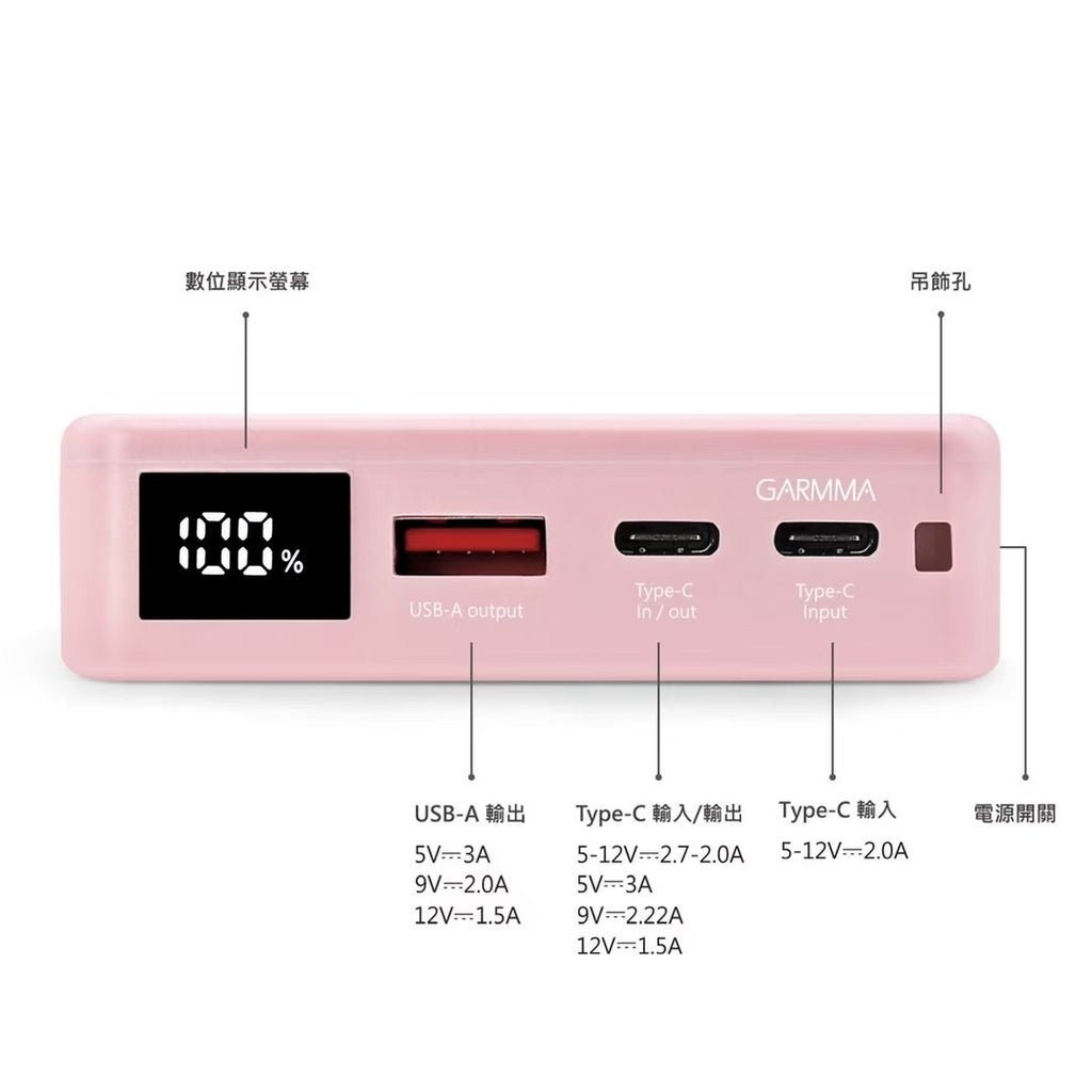Type-C輸入&輸出: 5-12V/2.7-2.0A,5V/3A,9V/2.22A,12V/1.5A
