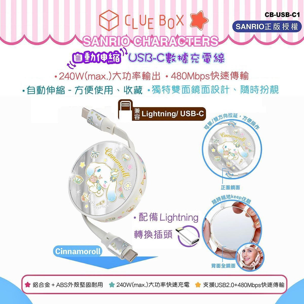 Clue Box全新Sanrio Characters自動伸縮USB-C數據充電電線 - 😍😍